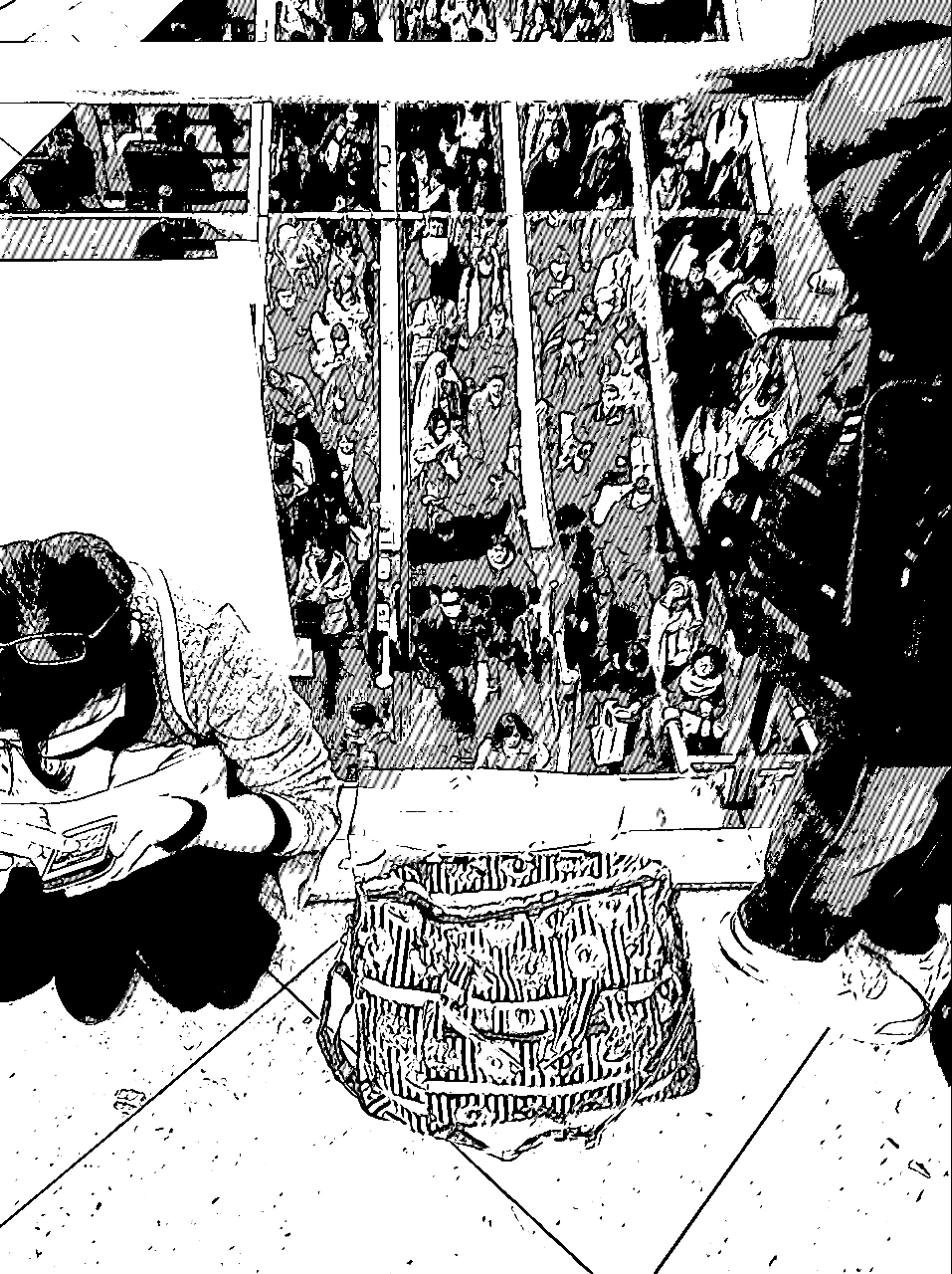 ←エスカレーターに人がびっしりの図
