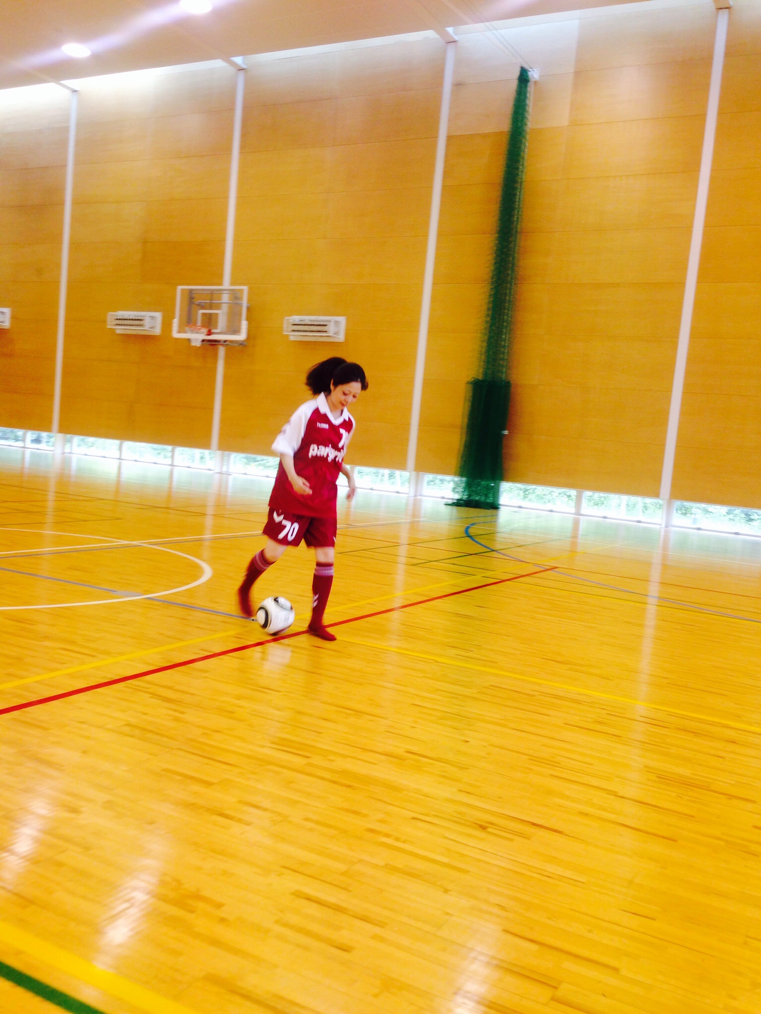 動画用にフットサルをするN氏。